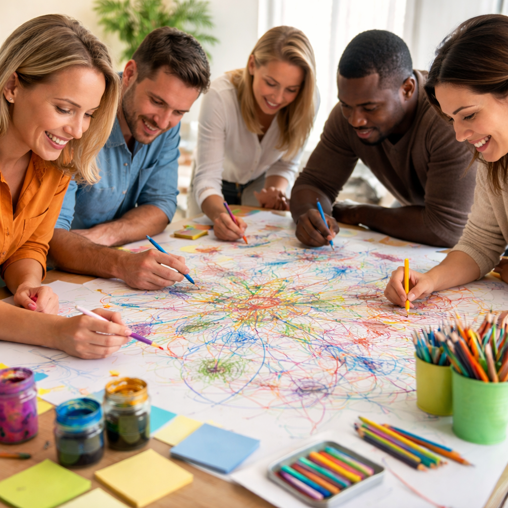 Gemeinsames Arbeiten mit neurokreativen Methoden an beruflichen Themen, Fragestellungen oder Entwicklungsprozessen.